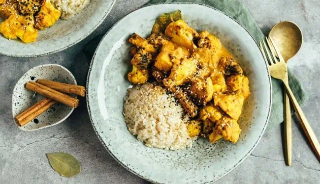 Blumenkohl mit Tofu in Kolhapuri Sauce (v&gf)