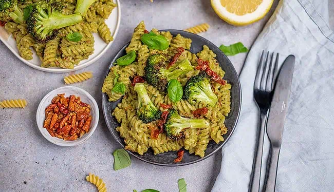 Veganer Brokkoli Nudelsalat mit Hanf-Pesto