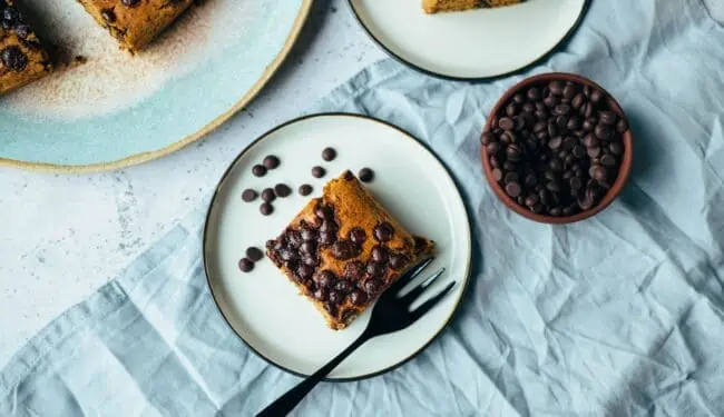 Unglaublich leckere Blondies mit feinen Schokostücken, Buchweizenmehl und Mandelmus