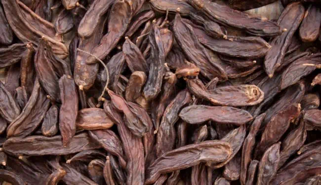 Caroben sind die Hülsenfrüchte des Johannisbrotbaumes, oder bot. Ceratonia siliqua, der vor allem rund um das Mittelmeer gedeiht. Der Name stammt von einer Geschichte über Johannes des Täufers, da er soll sich in der Wüste von Carob ernährt haben soll. Die Ernte findet zwischen August und Oktober statt. Dabei werden die Schoten von den Bäumen geschlagen und von den Einheimischen auch gerne einmal frisch verzehrt. Generell gibt es die Schote frisch, getrocknet oder als Sirup (auch Kaftan genannt). Als Back Fan kennst Du vielleicht das Johannisbrotkernmehl, welches aus den Samen gewonnen wird. Johannisbrotkernmehl ist ein wunderbares Binde- und Verdickungsmittel und praktischerweise glutenfrei.