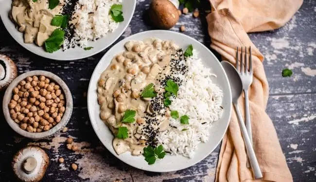 Champignons und Kichererbsen in einer cremigen Sauce, schnell und einfach