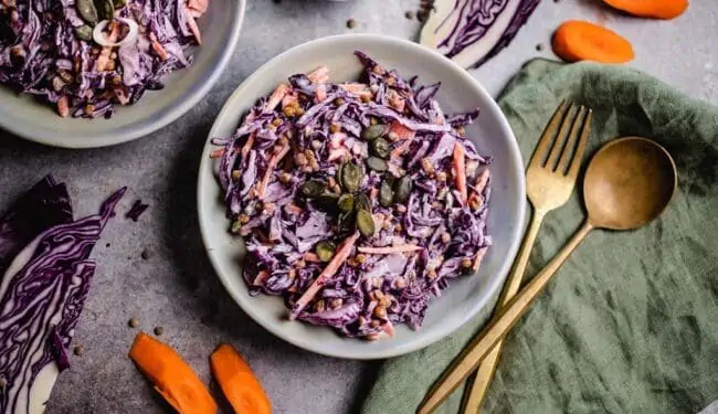 Cremiger Salat mit Rotkohl und Linsen