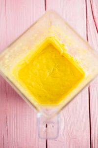 - Rohrohrzucker, Mangostücke, Anhornsirup, Zitronensaft, Cashewnüsse und Vanille in einen Hochleistungsmixer geben und zu einem feinen Püree verarbeiten.¼ TL Xanthan Gum, 31 g Rohrohrzucker, 350 g Mangostücke aus dem Glas, 60 ml Ahornsirup, 30 ml Zitronensaft, 100 g Cashewnüsse, ¼ TL Bourbon Vanille gemahlen