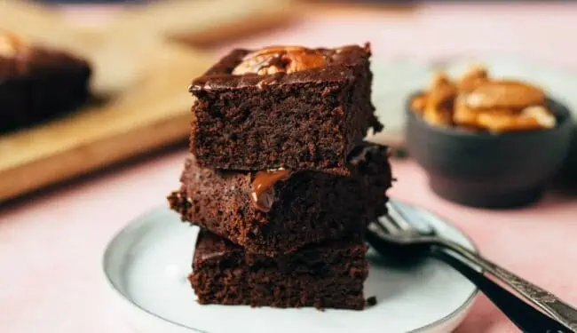 - In 15 Stücke schneiden und aus der Backform nehmen und optional mit einer Kugel Vanilleeis und geschmolzener Schokolade servieren. Genießen!Dunkle vegane Schokolade, Hausgemachtes