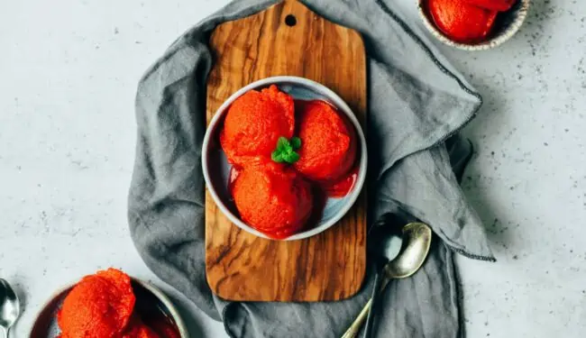 Falls es heute nicht unbedingt das Erdbeer Sorbet sein darf, dann empfehle ich dir mein Fudge Brownie Eis, Mango Eis, Mars Riegel oder cremiges Vanille Eis.