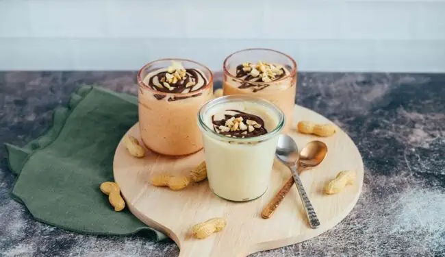 Schnelles, einfaches Dessert aus Seidentofu, Aquafaba und Erdnussmus