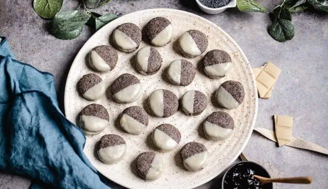 Gefüllte Mohnplätzchen mit weißer Schokolade