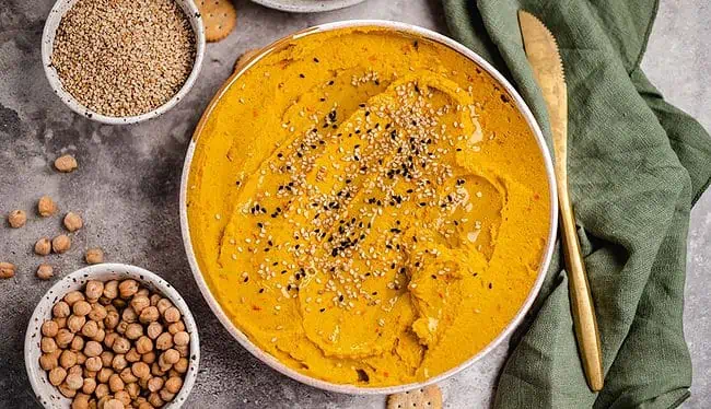 Gerösteter Kürbis Hummus ist die Antwort an alle, die auf der Suche nach herbstlichen Rezepten sind. Aktuell könnte ich den ganzen Tag leckere Rezepte mit Kürbis machen. Kürbis Scones, Kürbis Torte, oder ein schnelles Kürbis Ofengericht. Ich würde vorschlagen, du gibst einmal das Stichwort Kürbis in die Suche ein und du wirst merken wovon ich spreche. Heute habe ich mir gedacht, dass wir einen ganz besonderen Hummus machen könnten. Eine Variante mit geröstetem Kürbis, klingt super, oder? Ich bin immer noch hin und weg, denn der Kürbis verleiht dem Hummus eine ganz besondere Geschmacksnote. Lass uns gerne zusammen loslegen.