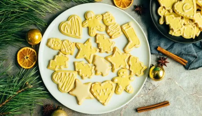 Am liebsten mag ich das Ausstechen, mit ganz vielen unterschiedlichen Formen. Tannenbäume, Herzchen, Sterne, Stiefel und sonstige Formen, die meine Stimmung heben. Ich finde, Plätzchen backen hat fast etwas Meditatives und Beruhigendes. In Zeiten wie diesen eine wunderbare Möglichkeit, sich einfach mal von der Welt auszuklinken. Das Verzieren darf auch nicht fehlen, ist aber kein Muss. Ich rühre dafür einen Zuckerguss aus Puderzucker, Ahornsirup und etwas Pflanzenmilch an. Anschließend gebe ich es in eine Spritzflasche und verziere die Kekse nach Lust und Laune. Das macht echt Spaß und fördert die eigene Kreativität, die in stressigen Zeiten so oft verloren geht. Wer mag, kann zusätzlich mit Bio-veganen Lebensmittelfarben arbeiten und den Keksen einen bunten Anstrich verpassen.