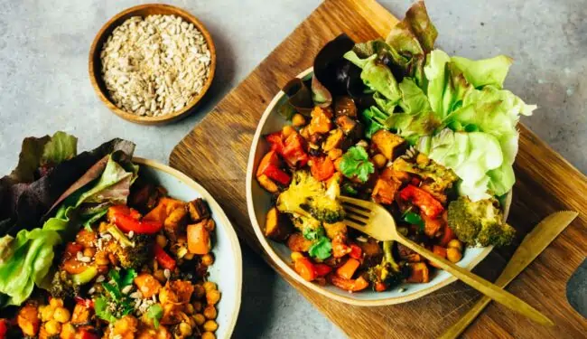 Dieses Gericht ist einfach der Hammer, weil es so einfach gemacht ist. Es eignet sich hervorragend nach einem anstrengenden Training oder einfach nur so als proteinreiches Mittag- oder Abendessen. Gemüse schnibbeln, Kichererbsen dazu, Tofu würfeln und ab in den Ofen damit. Kurz vor Ende der Backzeit kommen die Sonnenblumenkerne dazu und werden 10 Minuten mitgeschmort. Das Dressing wird neben der Backzeit angemischt und der Salat gewaschen. Dann alles zusammenmischen und fertig.