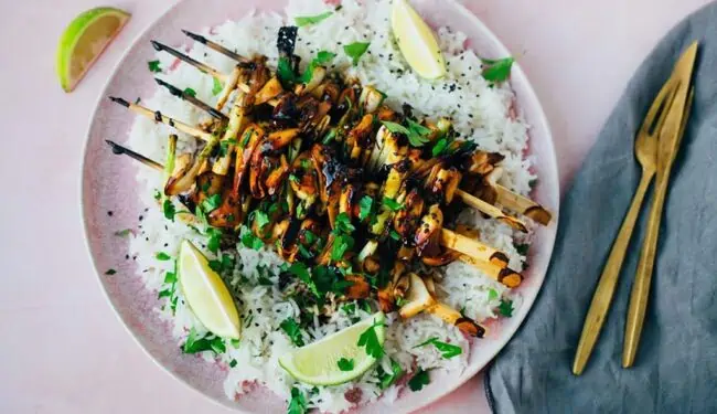 Die Kräuerseitling Spieße (vom Grill) sind: