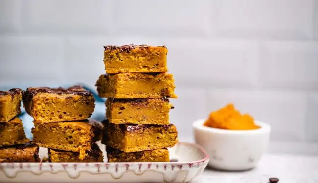 Wir fassen zusammen: Die Kürbis Blondies dauern gerade einmal 30 Minuten inklusive Vorbereitungszeit und kommen nur wenigen Zutaten aus. 1 Schüssel, 1 Brownie Form und los geht’s!