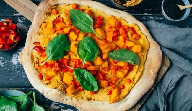 Die Pizza „Yoga“ mit Hummus und Kürbis ist: