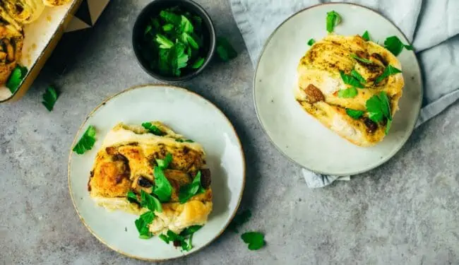 Die Pizzarollen mit Pesto und Pilzen sind: