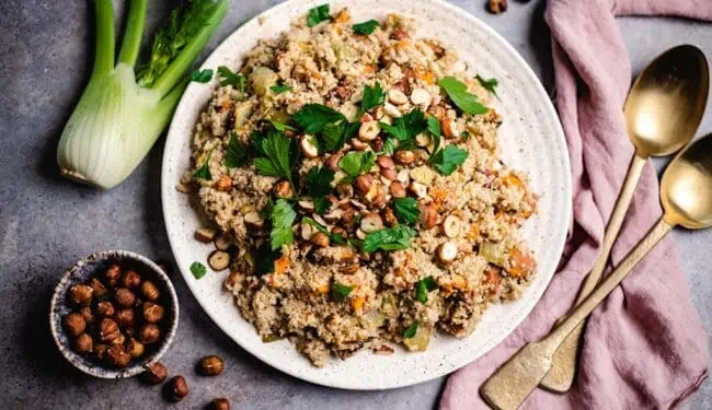 Quinoa Salat mit gerösteten Haselnüssen und Fenchel