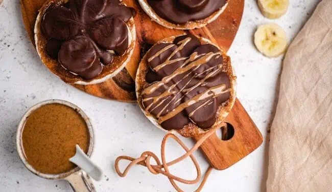 Reiswaffeln mit Nussmus und Schokolade