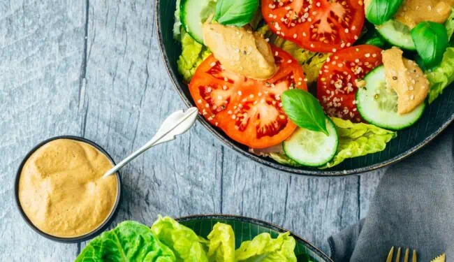 Salat mit cremigem Hanf-Tomatendressing (ölfrei) ist: