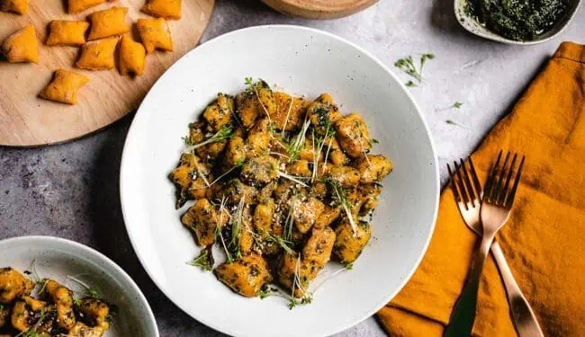 Vegane Süßkartoffel Gnocchi mit Pesto