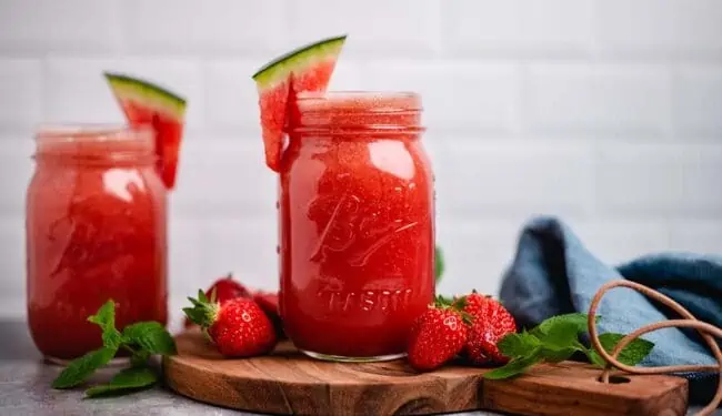 Ich denke, wir haben genug geredet über die Herstellung dieser leckeren Limonade. Werfen wir noch einen kurzen Blick auf die gesunden Inhaltsstoffe in Erdbeeren und Wassermelonen. Beide sind sehr reich an Wasser, wertvollen Vitaminen und Mineralstoffen: