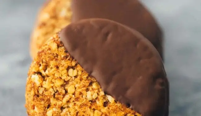 - Optional: Schokolade im Wasserbad schmelzen und die Bites jeweils auf einer Seite vollständig mit Schokolade überziehen. Vollständig abkühlen und Schokolade hart werden lassen (am besten im Kühlschrank). Genießen!100 g dunkle vegane Schokolade