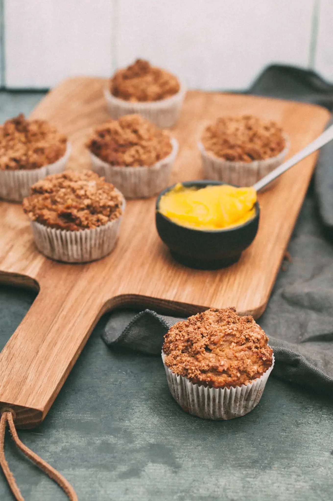 Ein besonderes Augenmerk verdienen auch die Streusel, denn statt Butter oder Margarine findest Du auch hier nur gesundes Kokosnussöl, tolle Gewürze und Rohrzucker. Genießen ohne schlechtes Gewissen.
