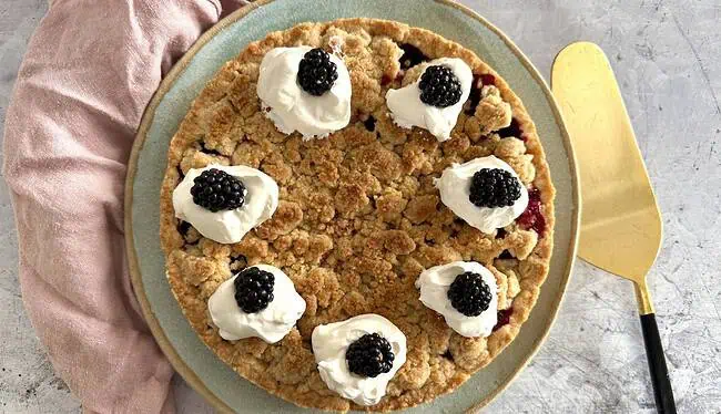 - Abkühlen lassen, damit die Füllung fest wird – Mit Sahne und frischen Brombeeren verfeinern und genießen