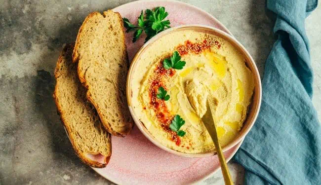 Kommen wir zu den Inhaltsstoffen, Kichererbsen vegan, Tahini, Zitronensaft, Knoblauch (frisch oder Granulat) , Kreuzkümmel und Salz. Optional können noch Papikapulver und getrocknete Petersilie zum Einsatz kommen. Als Topping eignen sich Sesamsamen, Olivenöl und frisches Petersiliengrün.