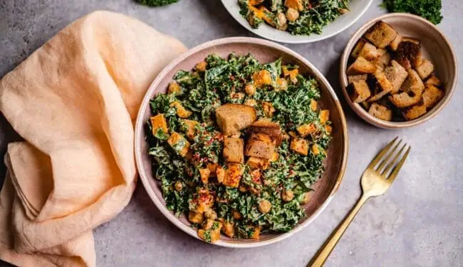 Cremiger veganer Salat mit Süßkartoffel und Grünkohl