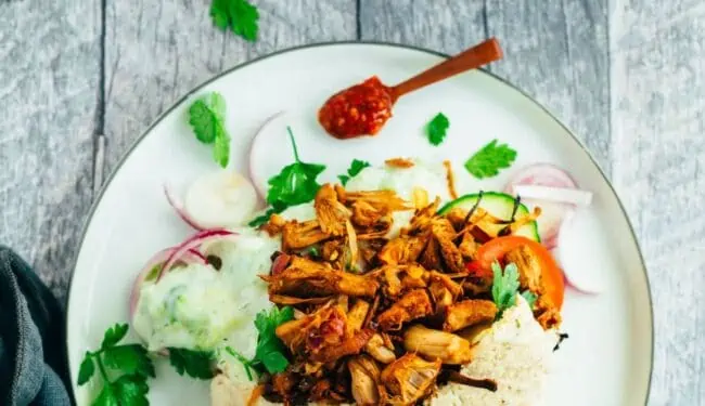 Das vegane Gyros Sandwich mit Jackfruit ist: