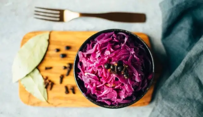 Ein kleiner Tipp noch am Rande: Solltest Du einmal Rotkraut fertig im Supermarkt kaufen, achte darauf, dass möglichst wenig Zusatzstoffe und Zucker beigesetzt sind. Oftmals sind die fertigen Varianten voll mit Glukose-Fruktose Sirup, tierischem Schmalz und sonstigen Zusatzstoffen.