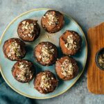 Je einen. Esslöffel Nutella auf den Cupcakes verstreichen, mit Haselnussstückern verzieren und genießen.